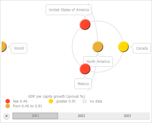 After executing the example the legend contains three intervals and is positioned at the left below the bubble tree plot area: