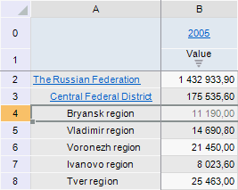 After executing the example the Belgorod Area element is removed via coordinates of the fourth row of the express report table: