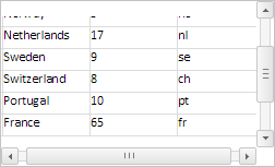 To execute the example, the HTML page must contain the DataGrid component named grid (see Example of Creating the DataGrid Component). Set new slider positions on horizontal and vertical scrollbars, hide table cell borders and set new parameters of table scrolling: