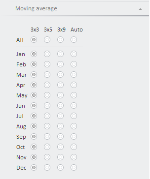 After executing the example the Moving Average panel of the Seasonal Adjustment (X11) method is placed in the HTML page: