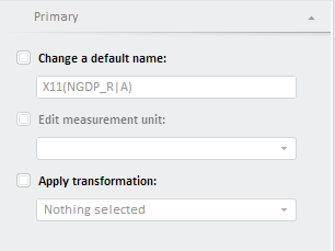 The MainSeriesPanel class implements the Primary panel, used to set up basic parameters of the time series shown in the data table.