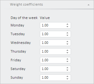 To execute the example, the HTML page must contain the WorkbookBox component named workbookBox (see Example of Creating the WorkbookBox Component. Show the Weight Coefficients panel: