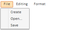Component includes three buttons. The menu consisting of three items opens by clicking the File button. The Select <item name> item message is displayed by selecting any of the items.