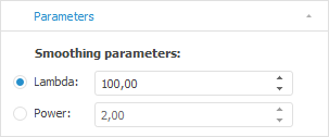 Smoothing Parameters. It controls series smoothness. The greater is the parameter value, the smoother is the series. If the smoothing parameter value tends to infinity, the series is transformed into a linear trend. Use the radio buttons to select a method to determine smoothing parameters: