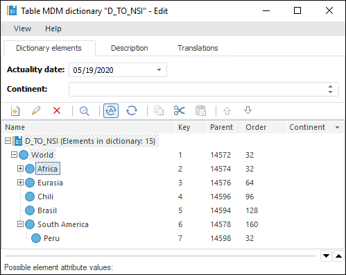 Executing the example requires an MDM dictionary with the 6443 key containing attributes with the KEY and NAME identifiers.