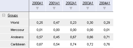 Clicking on such elements causes moving one level up/down the element dimension hierarchy.