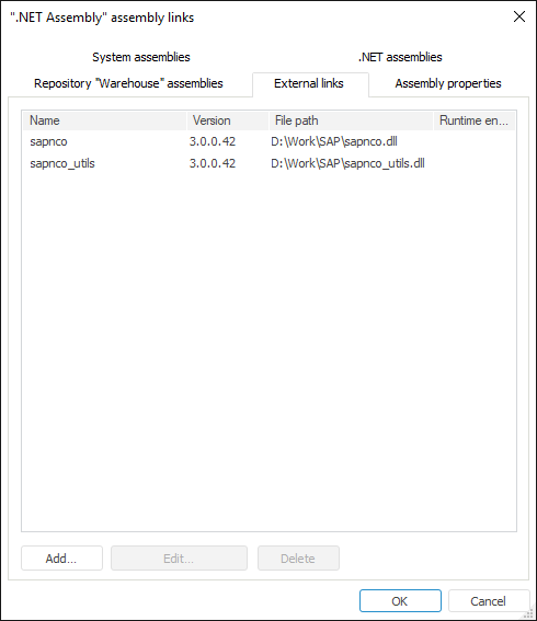 Add a link to SAP sapnco.dll and sapnco_utils.dll libraries: