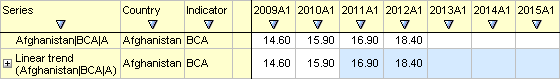 LnDataDisplayType.CalculatedValues. Calculated values of the series are displayed in the workbook: