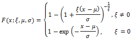 For x ≥ μ when ξ ≥ 0 and μ ≤ x ≤ μ - σ / ξ when ξ < 0, where: