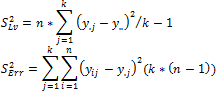 If levels of the x factor do not affect the mean for y, all the observations are a sample of the same general population (provided that the conditions listed above are satisfied). Then the variance of the general population can be estimated in two independent ways: using average values y for each of the levels x, or as arithmetic mean of the estimates of variances y for each of the levels x. The first estimate is known as the estimate of variance for the levels S2Lv, the second one estimates error variance S2Err.
