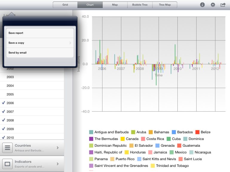 After executing the example the view with the index that follows the current view index is displayed, the report action bar is displayed: