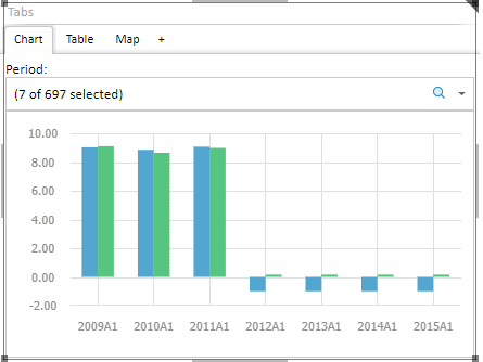 Tabs is a multi-page container element, which enables the user to group a number of dashboard objects. Contents of only one tab is displayed when working with a dashboard.