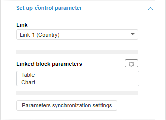 Select the link that corresponds to the parameter in the Link drop-down list. One link can control a parameter of the data source used in a number of dashboard blocks.