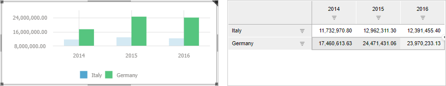 Selected Data Synchronization. It is used to synchronize selected data. Selected data synchronization enables the user, for example, to rebuild a chart according to the selected data in table, or rebuild a map according to the selected bubble in a bubble chart. If scrolling or zoom along the category axis is used in a visualizer, moving is executed to the elements that must be selected.