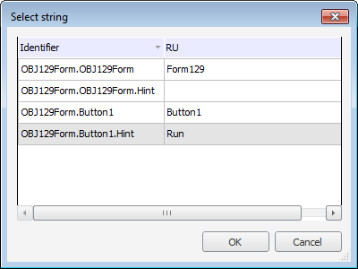 After resources are connected to a form for all visual components in the object inspector, the ResourcesID additional attribute is added to string data type properties. This attribute maps values of resources' row elements with values of string data type properties for visual components. The attribute value is generated automatically and includes the name of the component containing the object, the object name and the property name separated by points.