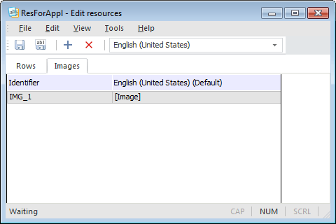 Select the English (United States) value in the Select Language list and click the OK button. A new language is added to the resources.