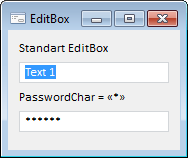 | PasswordChar | The PasswordChar property determines the character, which replaces the actual characters entered by the user. | |