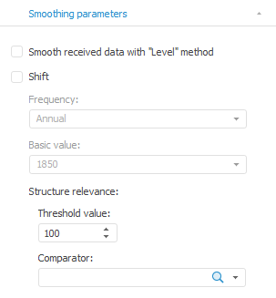 To set up parameters of data smoothing performed on the aggregation by indicators calculation, use the Smoothing Parameters side panel tab.