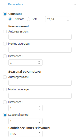 Autoregression. By default this checkbox is deselected. If the checkbox is selected, the specified order of the non-seasonal or seasonal autoregression is taken into account.