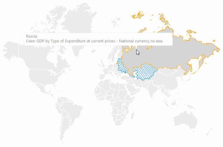 Version map shows territory border changes with time. For example, separating one country into several new countries or changing subject borders in one country.