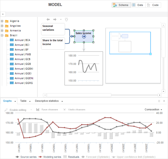 A working area is the main functional part for modeling and forecasting where the user works with models: