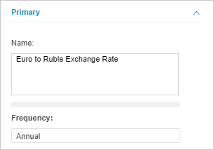 On working with a modeling container variable, the tab contains information on the variable name and calendar frequency. For example: