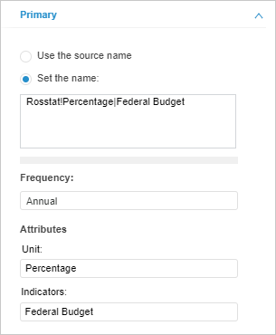 Set the Name. If the radio button is selected, the current name of the variable is displayed. Editable.