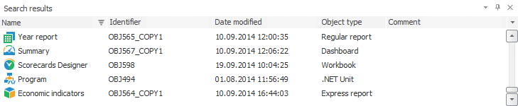 After executing the operations, the selected object in the search results is selected in the objects list.