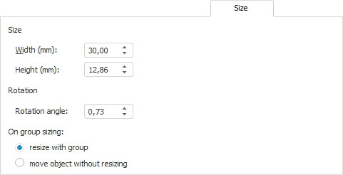 Object size and rotation angle are determined manually or using corresponding value editors.