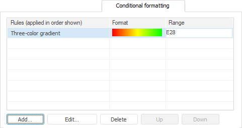 The Conditional Formatting tab is used to set up advanced cell formatting dependent on the specified condition.