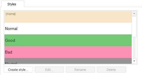 Delete. Deletes selected style from the list. This command is not available for external styles.
