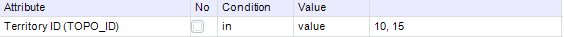 Select the checkbox in the No column, if it is not required to set up the invers condition. For example, the attribute value is not equal to five.