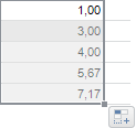On autofill with double-clicking the main button of the mouse, cells are starting from the current selected range down to the table end; if a column contains cells with already entered data, autofill is performed to these cells.