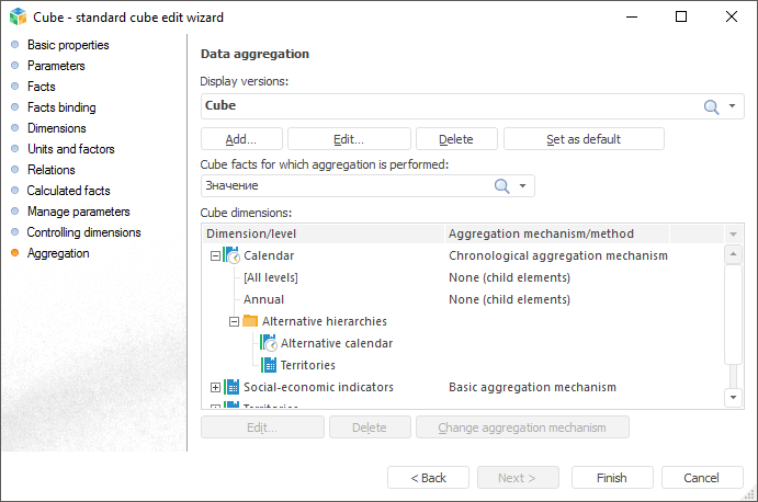 NOTE. If cube fact dimension aggregation is set, it is not available to use calculated expressions in linked cube facts.
