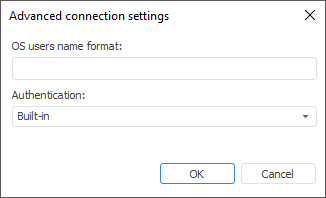 OS Users Name Format. This parameter is used when permissions are granted on the DBMS level. It is taken into account during connection and database operations. If a prefix before user names is set on the server (the OS_AUTHENT_PREFIX parameter), specify the prefix in this box. When the domain authentication is used, it may require to specify the user names format because Foresight Analytics Platform uses the following name format for domain authentication: DOMAIN\USER_NAME. To create format, you can use static text and the following tags:
