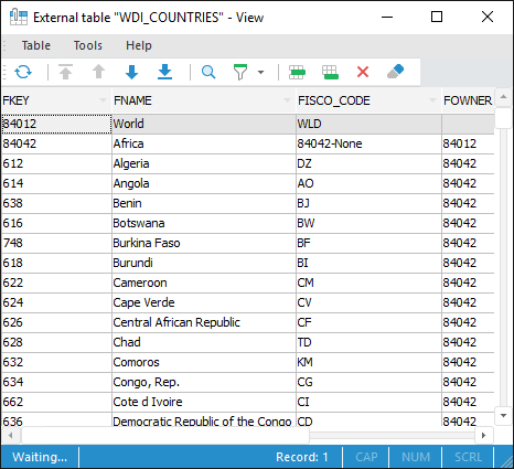 The table browser can be used to view and modify data stored in the table. Use the mouse cursor or the navigation panel buttons to navigate records.