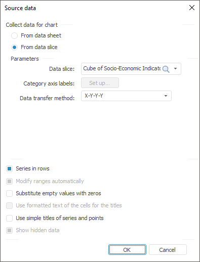 If the radio button is selected, an available data slice is used as the chart data source. The Source Data dialog box looks as follows: