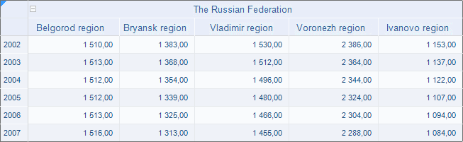 Data area title may have several levels of elements hierarchy. Additional columns for parent elements are added at such arrangement.