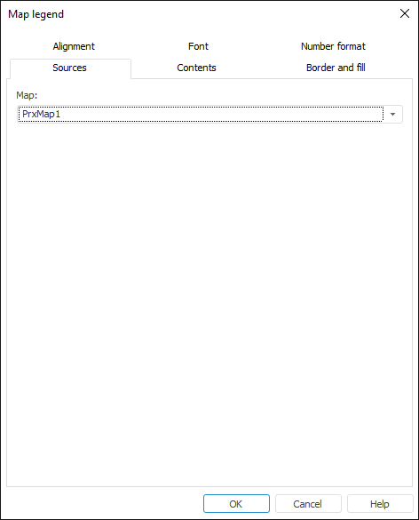 To set up map legend source, go to the Sources tab in the Map Legend dialog box: