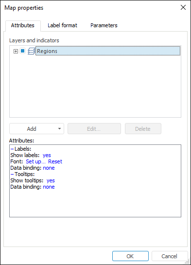 Select the required layer in the Layers and Indicators list and set the following parameters in the Attributes area:
