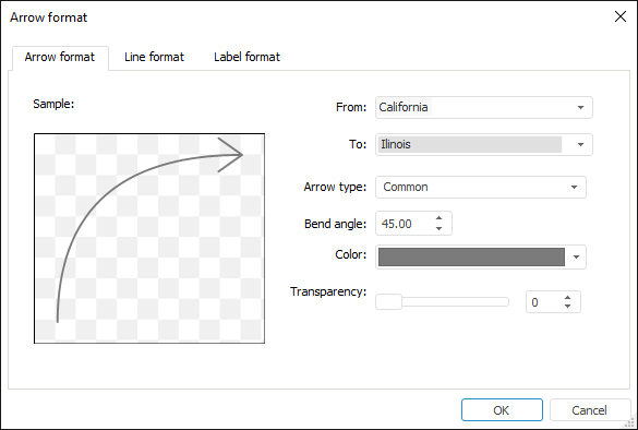 The left part of the tab contains a sample arrow based on the specified parameters. Changing any parameter (except for the From and To parameters) refreshes the sample.