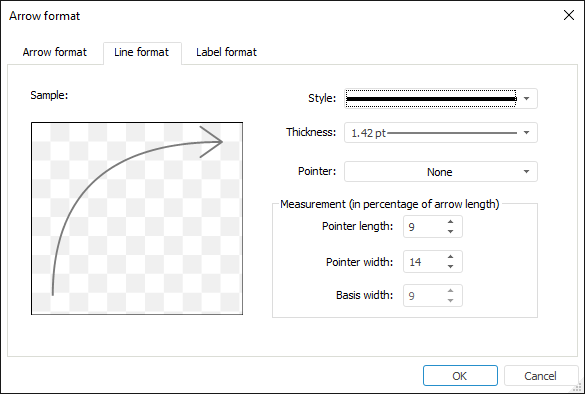 To set up arrow line format, use the Line Format tab in the Arrow Format dialog box.