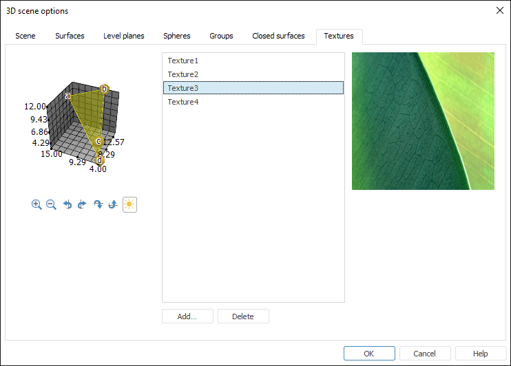 NOTE. The textures loaded when setting up parameters of multidimensional scene objects, are also added to the textures list.