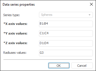 The Data Series Properties dialog box opens on adding or editing 3D scene data sources. Dialog box appearance depends on the selected series type.