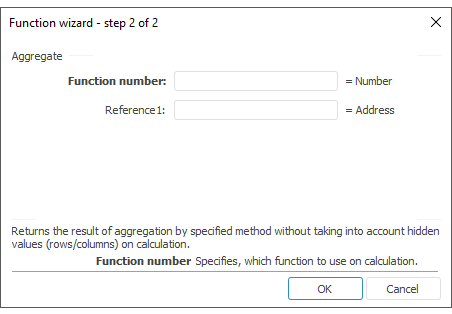 It returns result of aggregation with selected method with a possibility to not taking into account hidden values on calculation. Available methods: