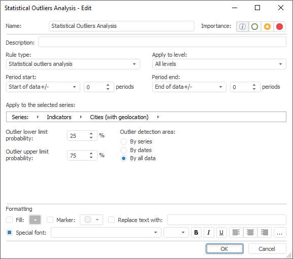By All Data. The rule checks all series and all points of execution period and detects statistical outliers for all data.