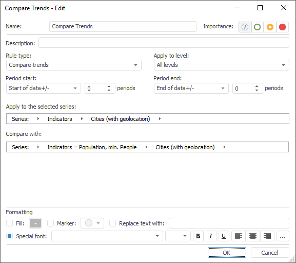 Determine values of attributes used to calculate trend for comparison. Use the Compare with breadcrumb. Principles of work with breadcrumb are the same as for breadcrumb in series tree.