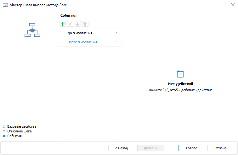 Для создания шага по вызову метода Fore откройте мастер шага вызова метода Fore.