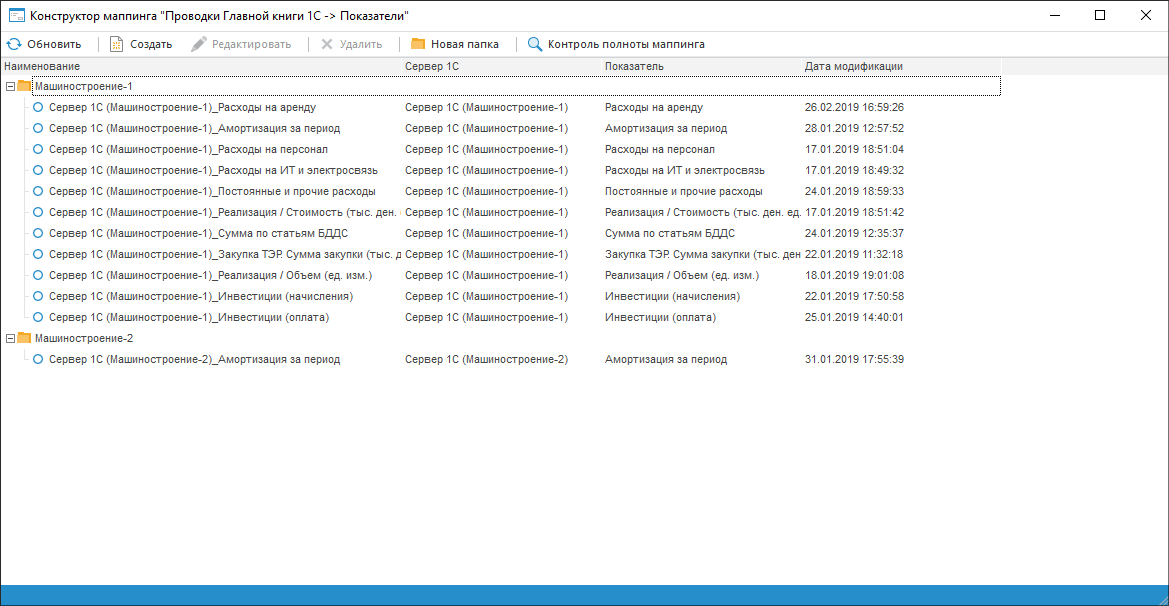 Конструктора маппинга «Проводки Главной книги 1С -> Показатели» предназначен для создания, настройки правил переноса данных проводок Главной книги в бюджетные показатели и контроля полноты маппинга.