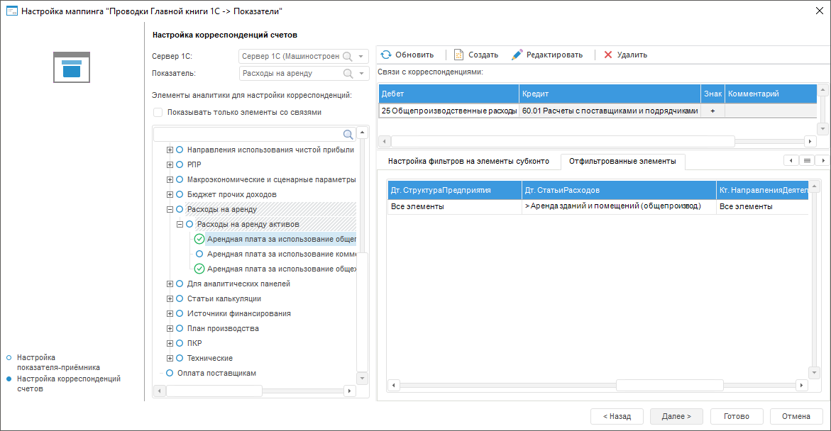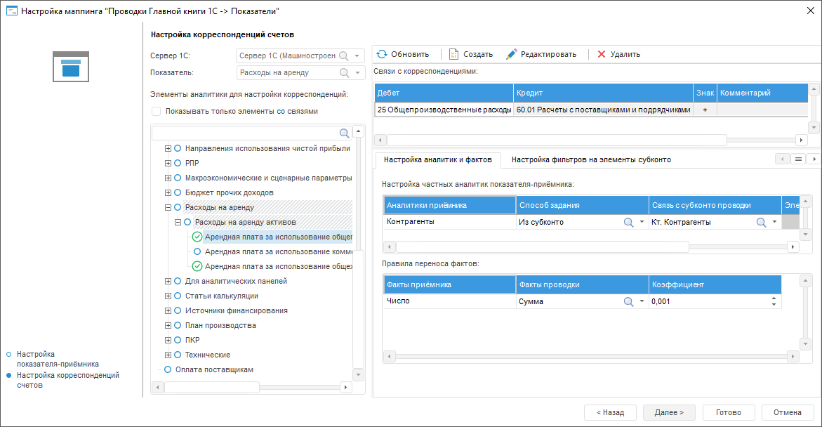 Рассмотрим пример создания правила маппинга для загрузки фактического показателя «Расходы на аренду».